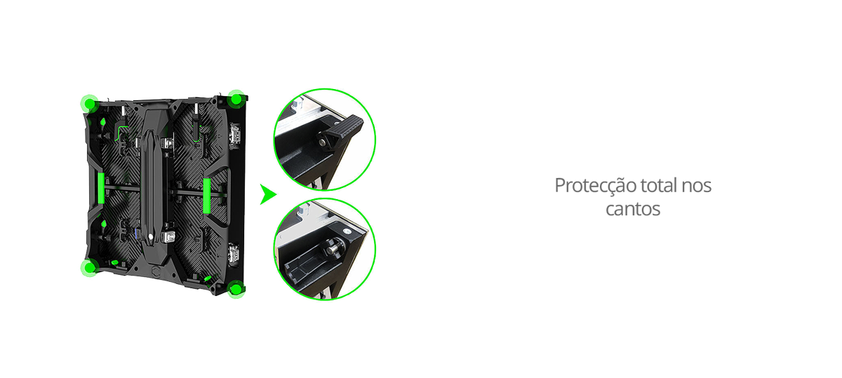 A resolução depende do numero ou densidade de pixeis por unidade de área. Para se obter com aproximação um ecran 16:9 HD (720p) com módulos 500mm x 500mm com uma densidade P2.9, a largura deste ecran teria aproximadamente 4,5 metros de largura por 2,5 metros de altura.